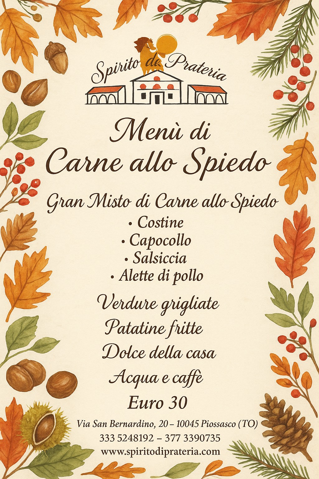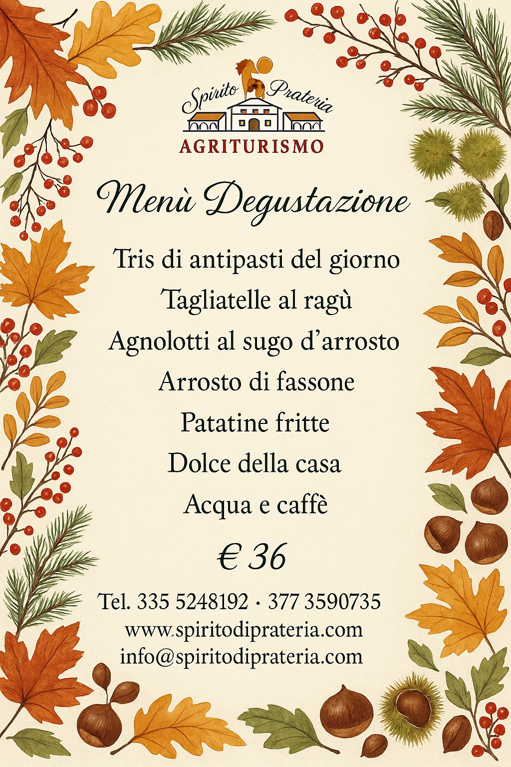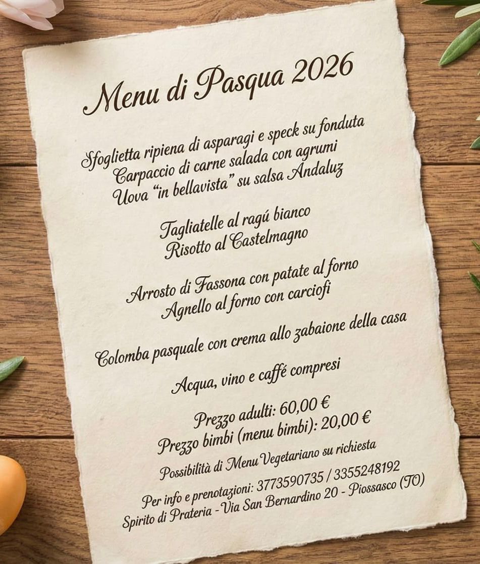 Presso l'Azienda Agricola "Spirito di Prateria" potrete degustare ottimi piatti tipici della nostra zona da noi prodotti accompagnati da ottimi vini e delizioso gelato di nostra produzione, oltre ad ottime crepes sia dolci che salate fatte con le uova delle nostre galline e le nostre pizze condite con ingredienti di nostra produzione, e per la stagione fredda abbiamo delle gustose cioccolate calde sia con gelato che senza dal gusto unico ed inimitabile...