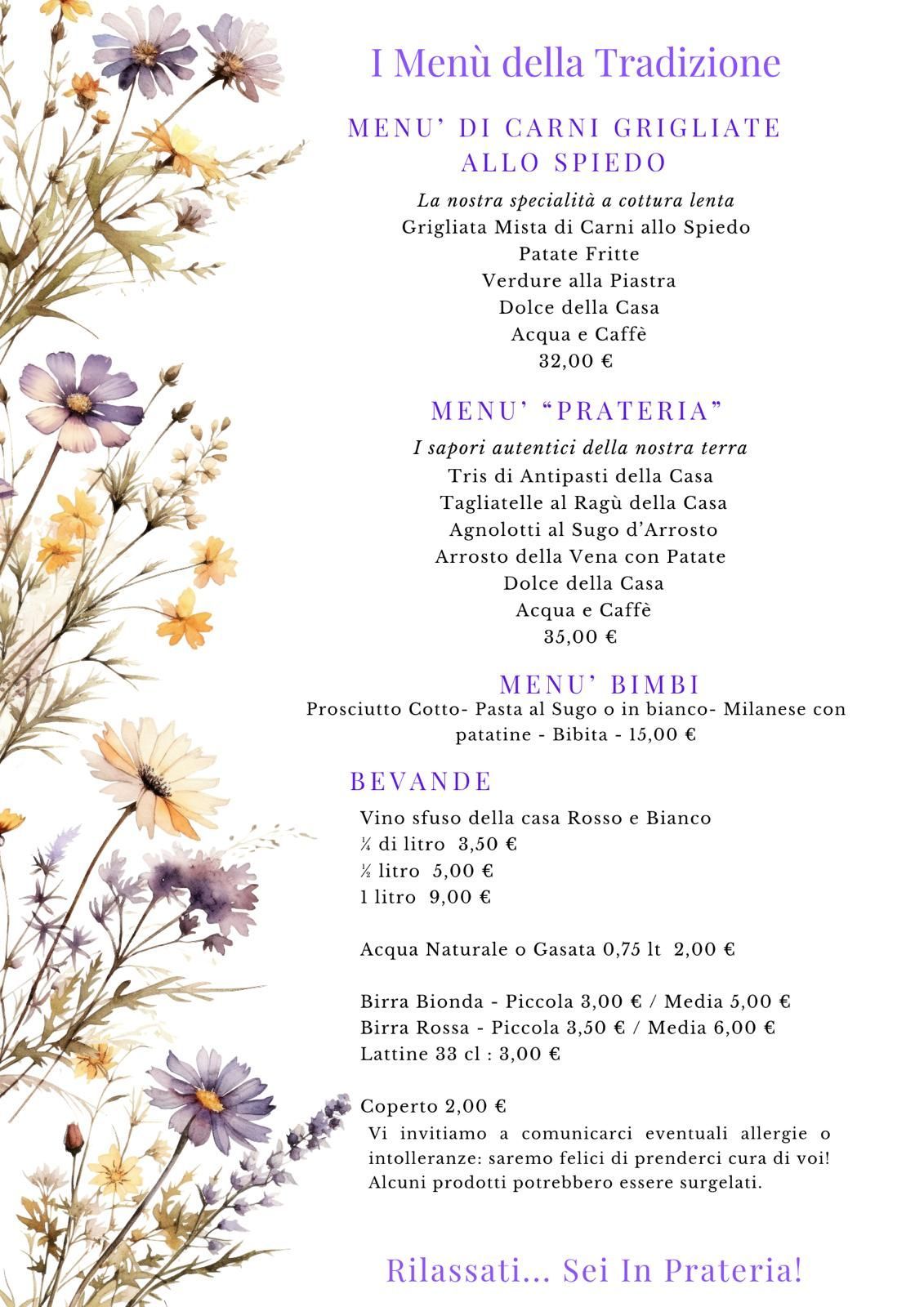 Presso l'Azienda Agricola "Spirito di Prateria" potrete degustare ottimi piatti tipici della nostra zona da noi prodotti accompagnati da ottimi vini e delizioso gelato di nostra produzione, oltre ad ottime crepes sia dolci che salate fatte con le uova delle nostre galline e le nostre pizze condite con ingredienti di nostra produzione, e per la stagione fredda abbiamo delle gustose cioccolate calde sia con gelato che senza dal gusto unico ed inimitabile...